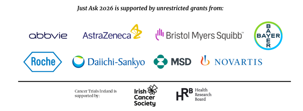 Since 2017, Cancer Trials Ireland has rolled out an annual campaign (Just Ask) to promote public awareness and understanding of clinical trials and associated issues. Just Ask 2024 is supported by:
